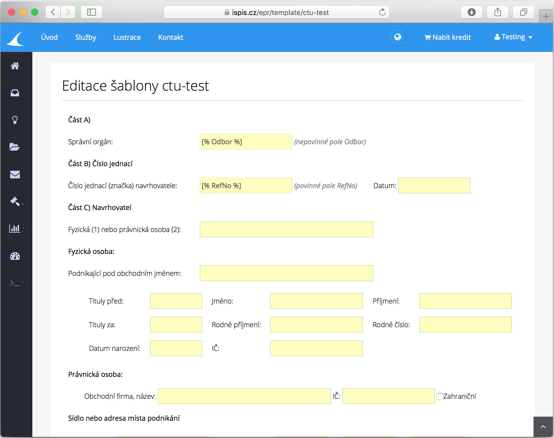 Vytvoření šablony pro hromadné podání formulářů.